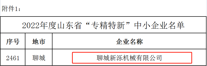 日前,山东省工业和信息化厅下发了《关于公布2022年度山东省“专精特新”中小企业的通知》(鲁工信创〔2022〕132号),聊城新泺机械有限公司荣列其中。